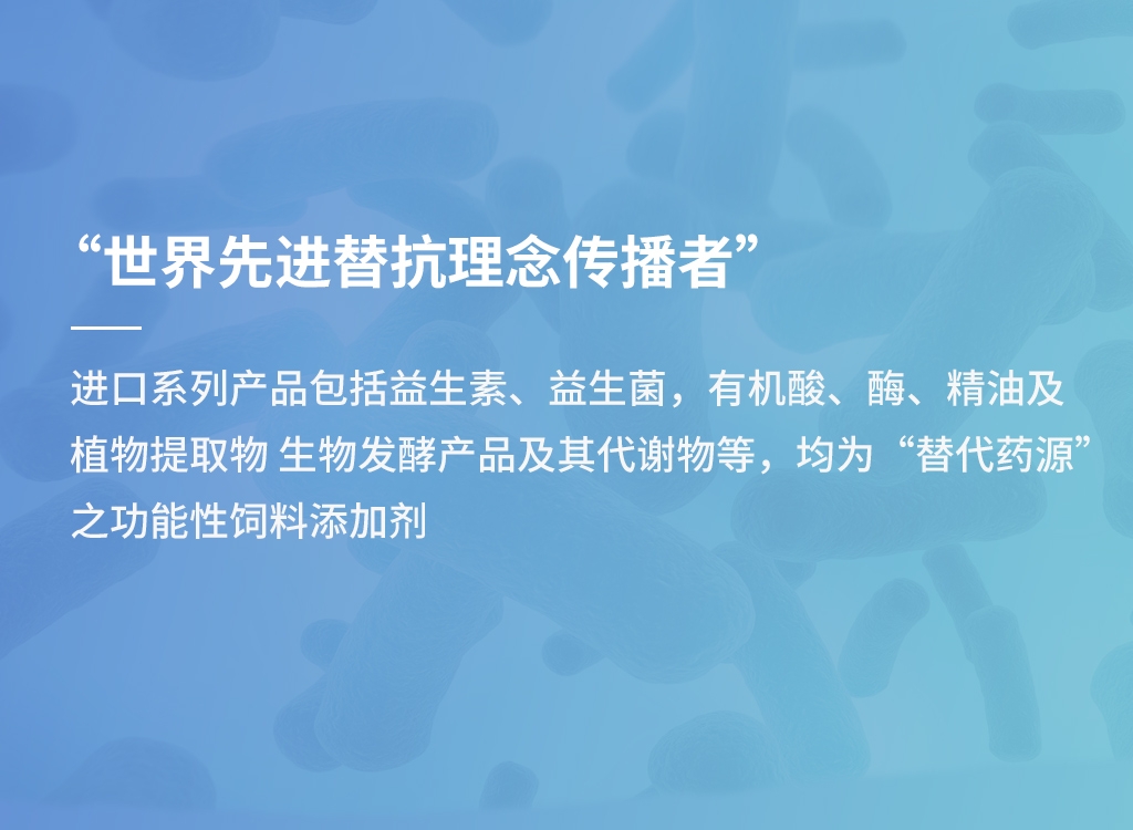 Ô×°½ø¿ÚϵÁвúÆ·°üÀ¨ÒæÉúËØ¡¢ÒæÉú¾ú£¬ÓлúËᡢø¡¢¾«Óͼ°Ö²ÎïÌáÈ¡ÎÉúÎï·¢½Í²úÆ·¼°Æä´úлÎïµÈ£¬¾ùΪ¡°Ìæ´úÒ©Ìí¡±Ö®¹¦ÄÜÐÔËÇÁÏÌí¼Ó¼Á¡£182ÌåÓý¼¯ÍŹٷ½ÍøÕ¾ÓµÓÐ30ÓàÃû¹úÄÚÍ⶯±£×¨¼ÒÍŶӣ¬10ÄêÀ´£¬ÔÚ¹úÄÚÍâ½øÐÐÁË´óÁ¿µÄÌæ¿¹ÑøÖ³Êµ¼ù£¬ÈÚ»á¹áͨÁËÅ·ÃË¡¢º«¹úµÄʵ֤ÐÔ¡¢ÏµÍ³»¯¡°Ìæ¿¹ÑøÖ³·½°¸¡±£»Ò»Ö±¼á³ÖΪËÇÁÏ¡¢ÑøÖ³Éú²úÕßÌṩÒÔ¡°Î´À´³ÖÐø·¢Õ¹¡±Îªµ¼ÏòµÄרҵ·þÎñ£¬ÖÂÁ¦³ÉΪÎÒ¹úÌæ¿¹ÑøÖ³·½°¸·þÎñÉÌ£¡